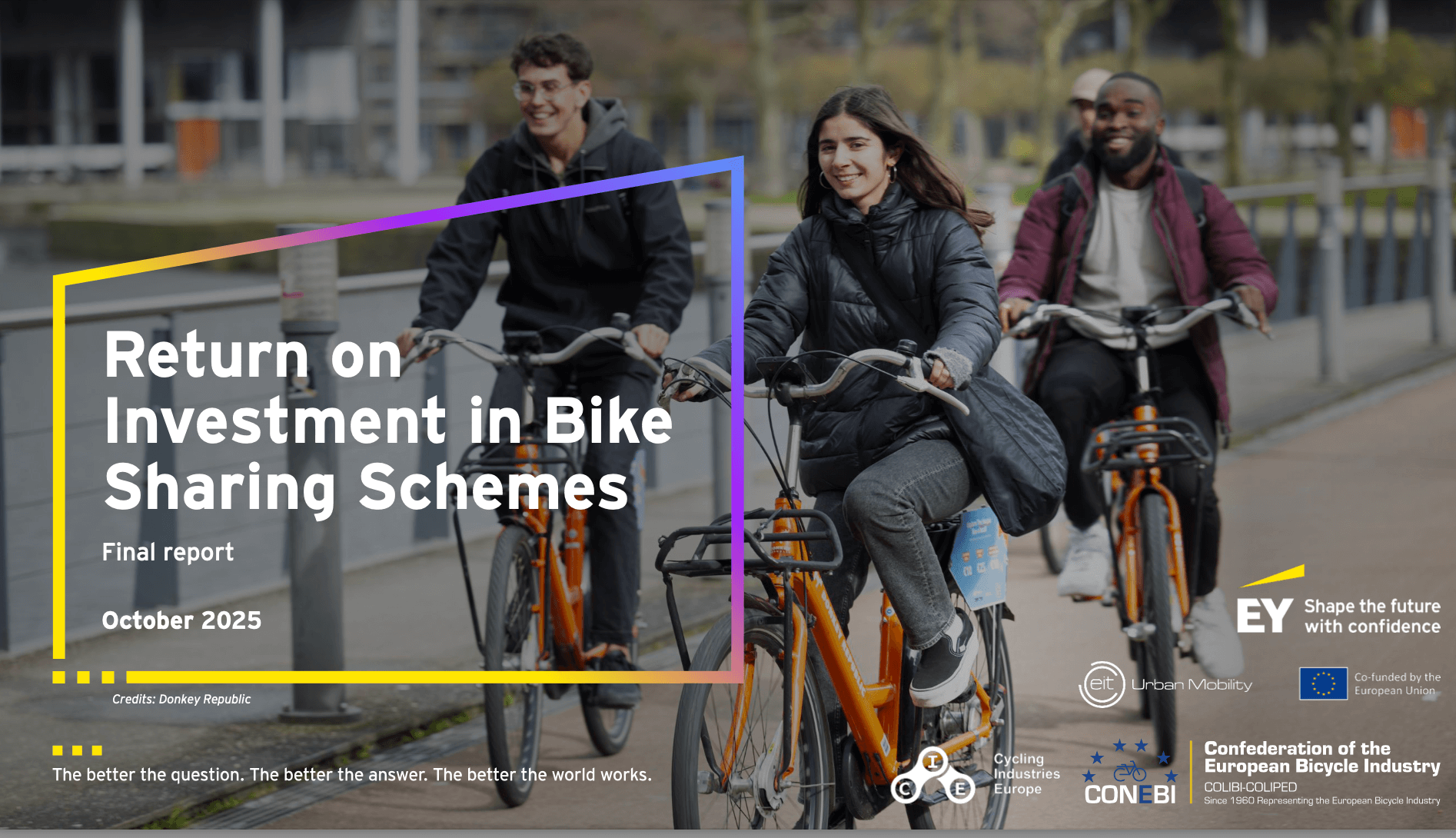 Un nuovo studio realizzato da EY (Ernst & Young) per Cycling Industries Europe (CIE) e EIT Urban Mobility fornisce per la prima volta una valutazione economica completa dei sistemi di bike sharing in Europa, dimostrando che si tratta di un investimento pubblico ad alto rendimento, non solo una scelta ecologica.